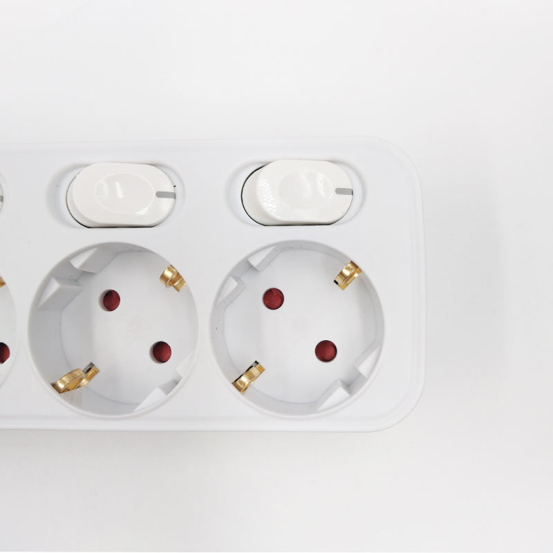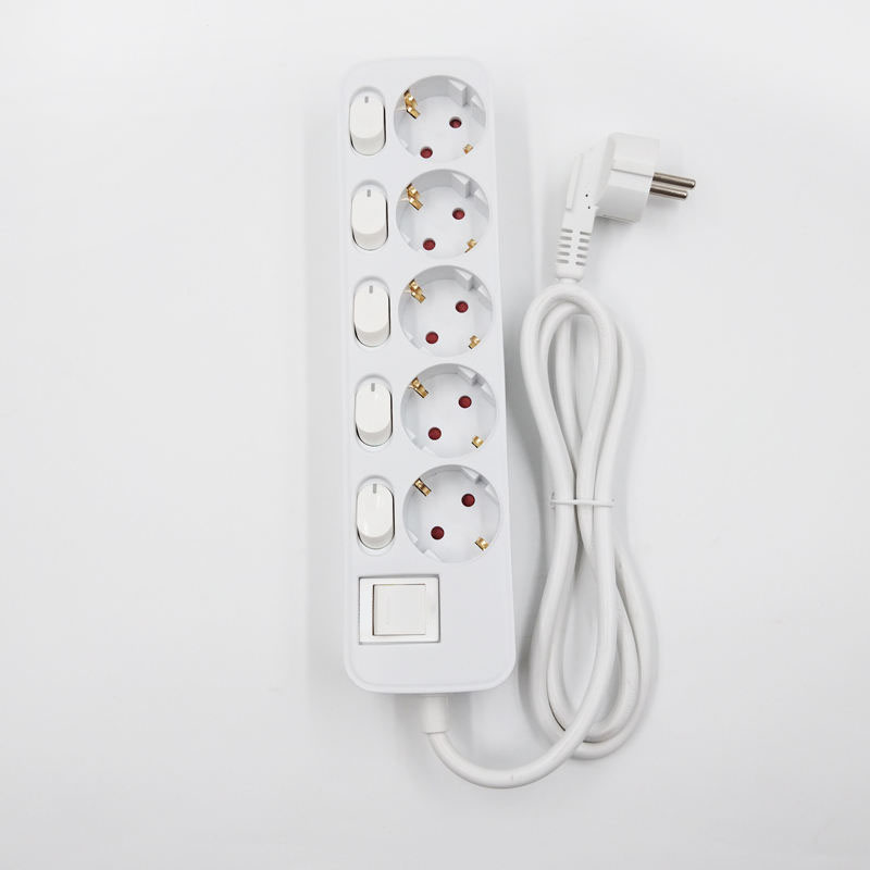 5 Independent Outlets: 5 EU Schuko AC outlets, each with its own white switch for separate on/off control, plus a master power switch for total control 🔌