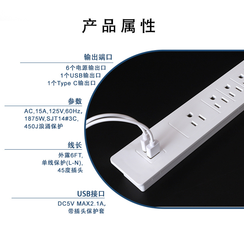 Equipped with multiple standard American 3-pin grounded sockets, wide spacing design prevents plug interference, stable power supply for home appliances, office electronics, computers, lamps and daily devices.