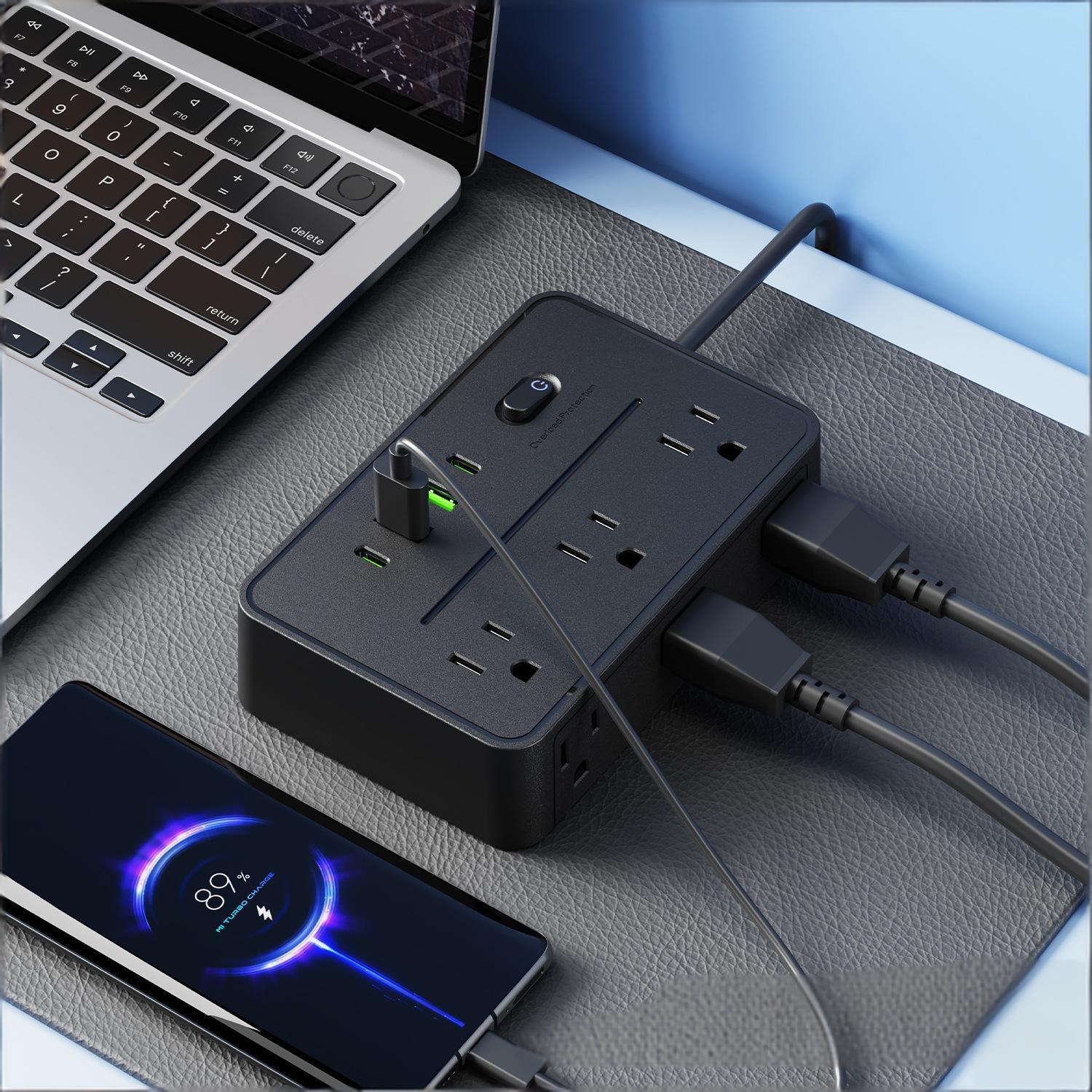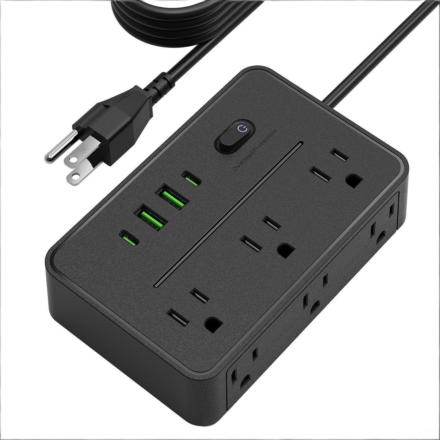 Heavy-Duty 6ft Cable 🧵 The thick, braided 6ft cord gives you flexibility to place the strip anywhere in your home or office, even in hard-to-reach spots.