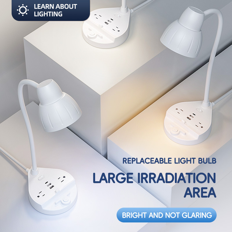 4-in-1 All-in-One Hub: 3 universal AC outlets + dimmable LED desk lamp, powering/charging devices while providing soft lighting 📱💡