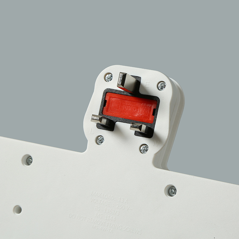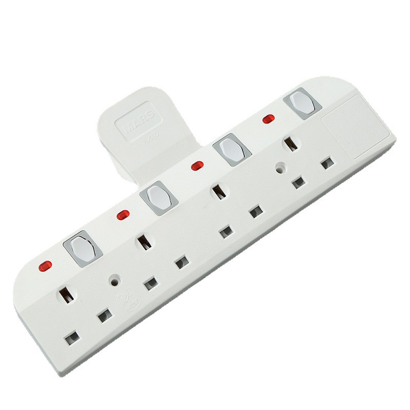 4-Way UK Design: 4 standard UK BS1363 3-pin outlets, each with its own illuminated power switch and red LED indicator.