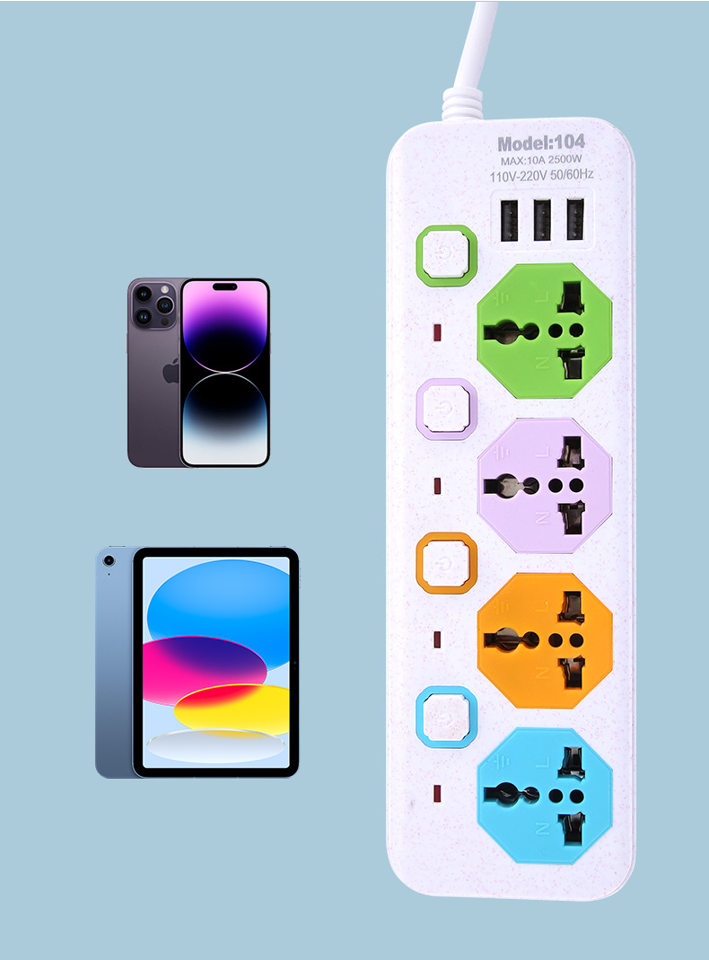 Vibrant & Playful: Bright, multicolored socket panels (green, purple, orange, blue) add a fun pop of color to desks, nightstands, and dorm rooms.