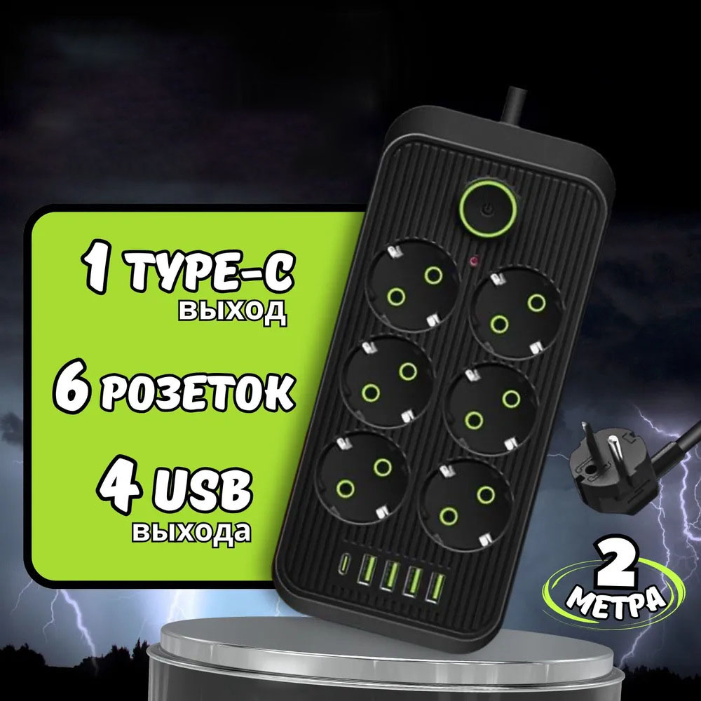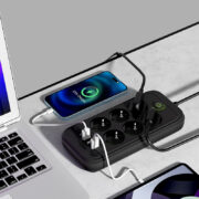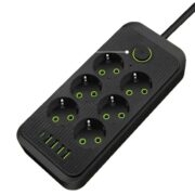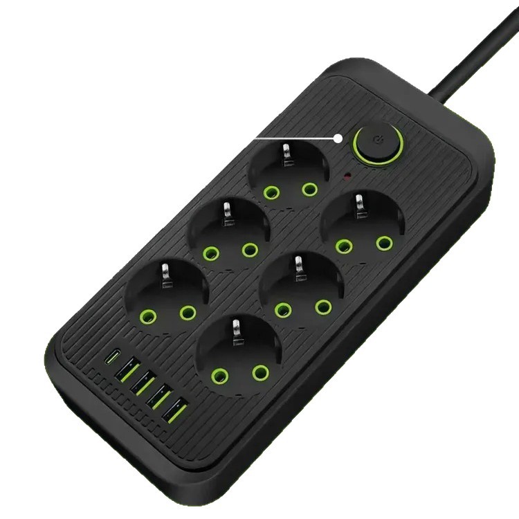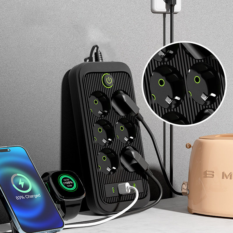 11-in-1 Design: Six standard European Schuko power outlets + five USB-A ports, capable of powering and charging up to 11 devices simultaneously.