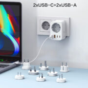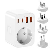 5-in-1 Design: 1 standard EU Schuko AC outlet + 2 USB-C ports + 2 QC 3.0 USB-A ports, powering and charging up to 5 devices simultaneously.