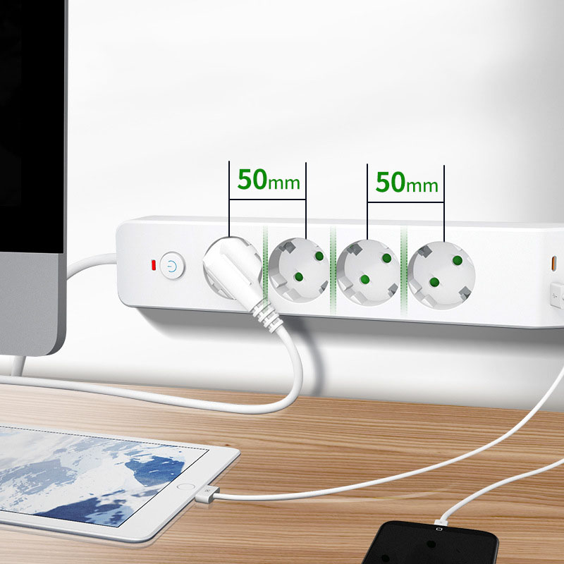 Built-in 4 grounded EU Type C/F sockets, with wide spacing to prevent plug interference, ensuring stable power for all your European home and office devices.