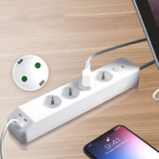 The long, slim white body is lightweight and compact, fitting neatly on desks, under tables, or mounted on walls, keeping your space tidy and cable-free.