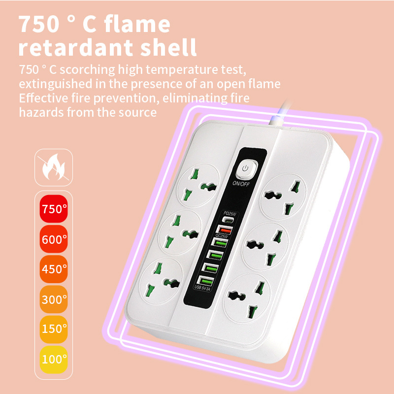 8-in-1 All-in-One Hub: 3 universal AC outlets + 2 USB-C ports (18W PD) + 3 QC USB-A ports, powering/charging up to 8 devices simultaneously 📱