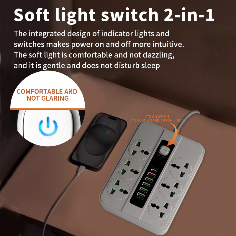 Master Control Switch: One-touch power switch with LED indicator for easy on/off control of all connected devices, saving energy.