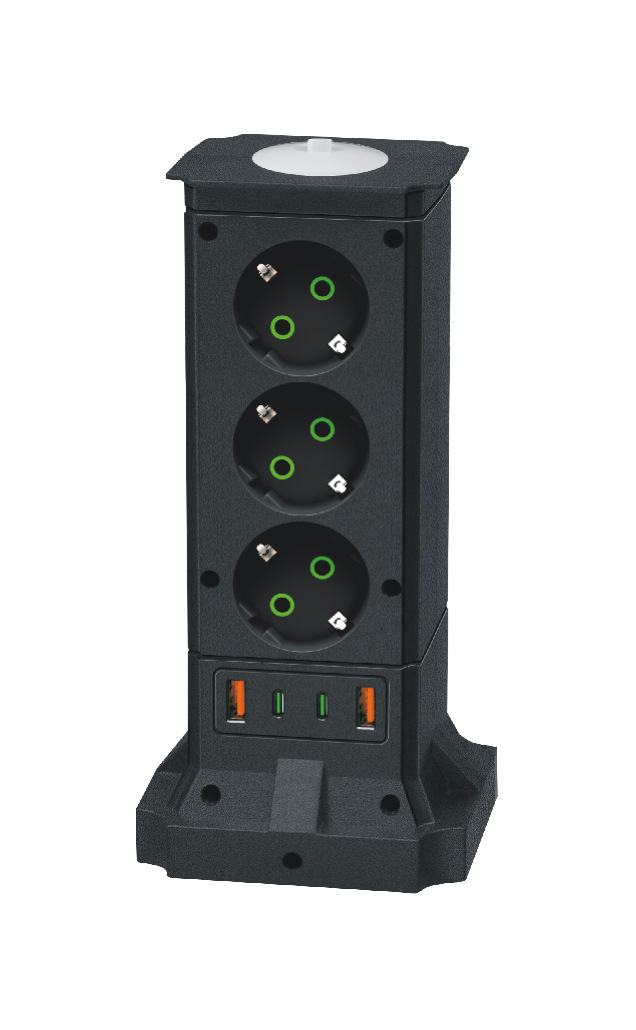 The ultimate power solution for your home office. Massive power supply with 4 sockets and fast-charging USB ports, say goodbye to messy cords 👋.