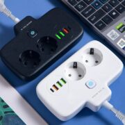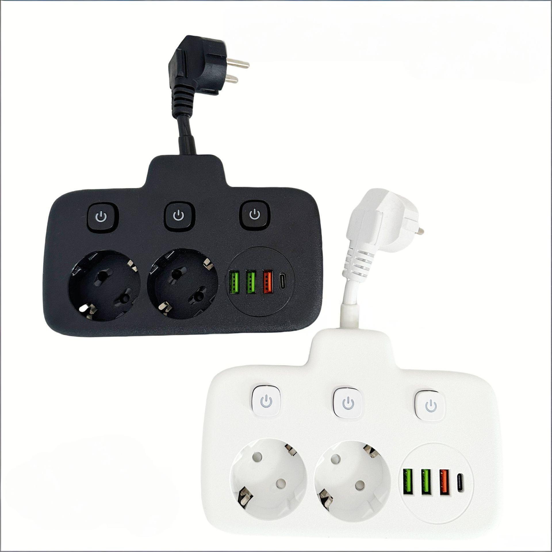 Adopts soft short extension cord, flexible and durable, avoids blocking adjacent sockets, fits closely against the wall, compact size does not take up space, keeps your desktop tidy and clean.