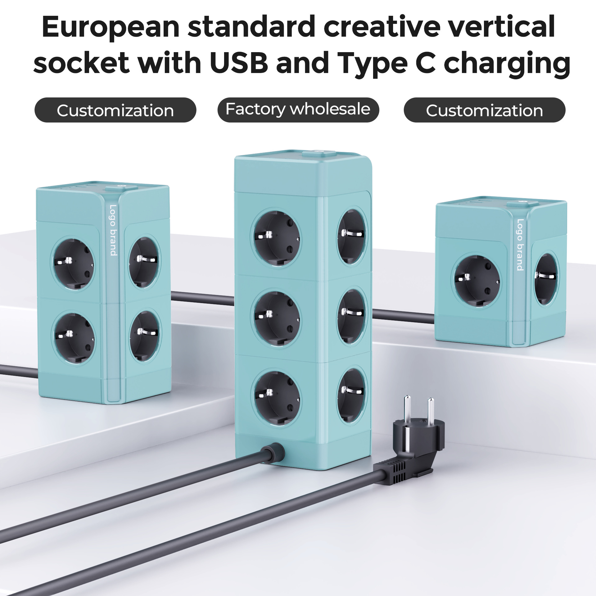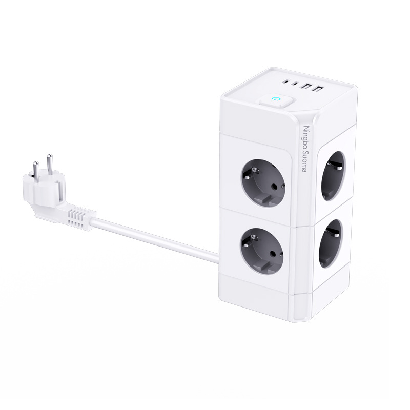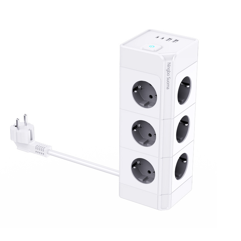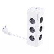 9-in-1 All-in-One Hub: 6 standard EU Schuko AC outlets + 3 USB-A ports, powering/charging up to 9 devices simultaneously 📱