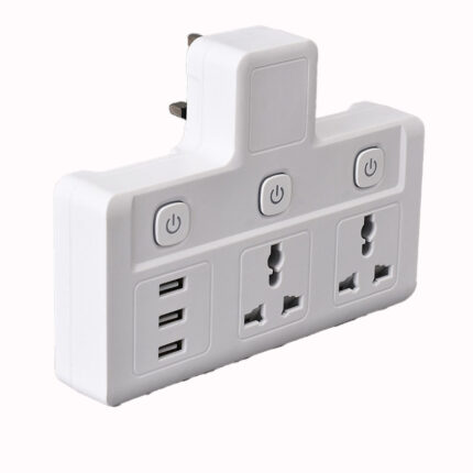 Modern 3-Gang Power Strip with LED Ring Indicators 🔌✨