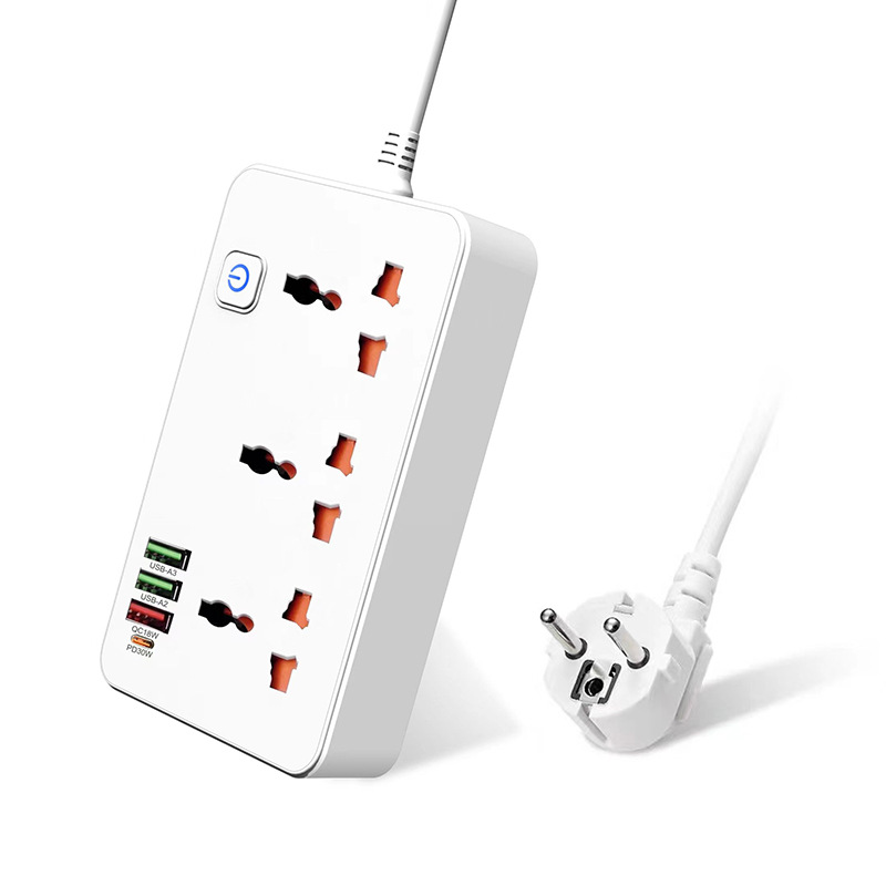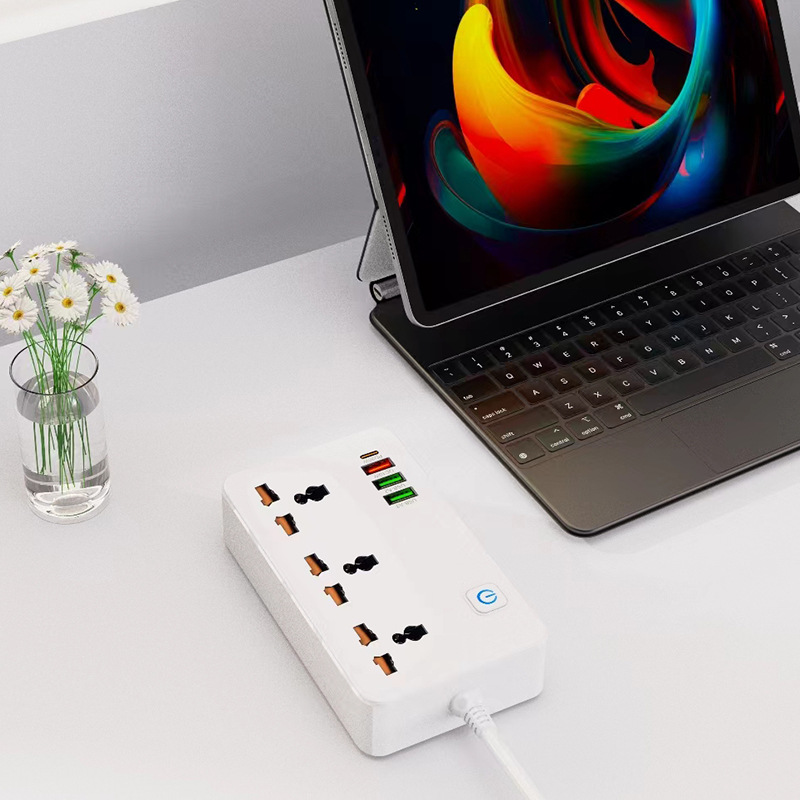 Single Master Power Switch 🎛️ A large, soft-touch main switch controls all outlets, with a blue LED indicator to show power status at a glance for easy daily use.