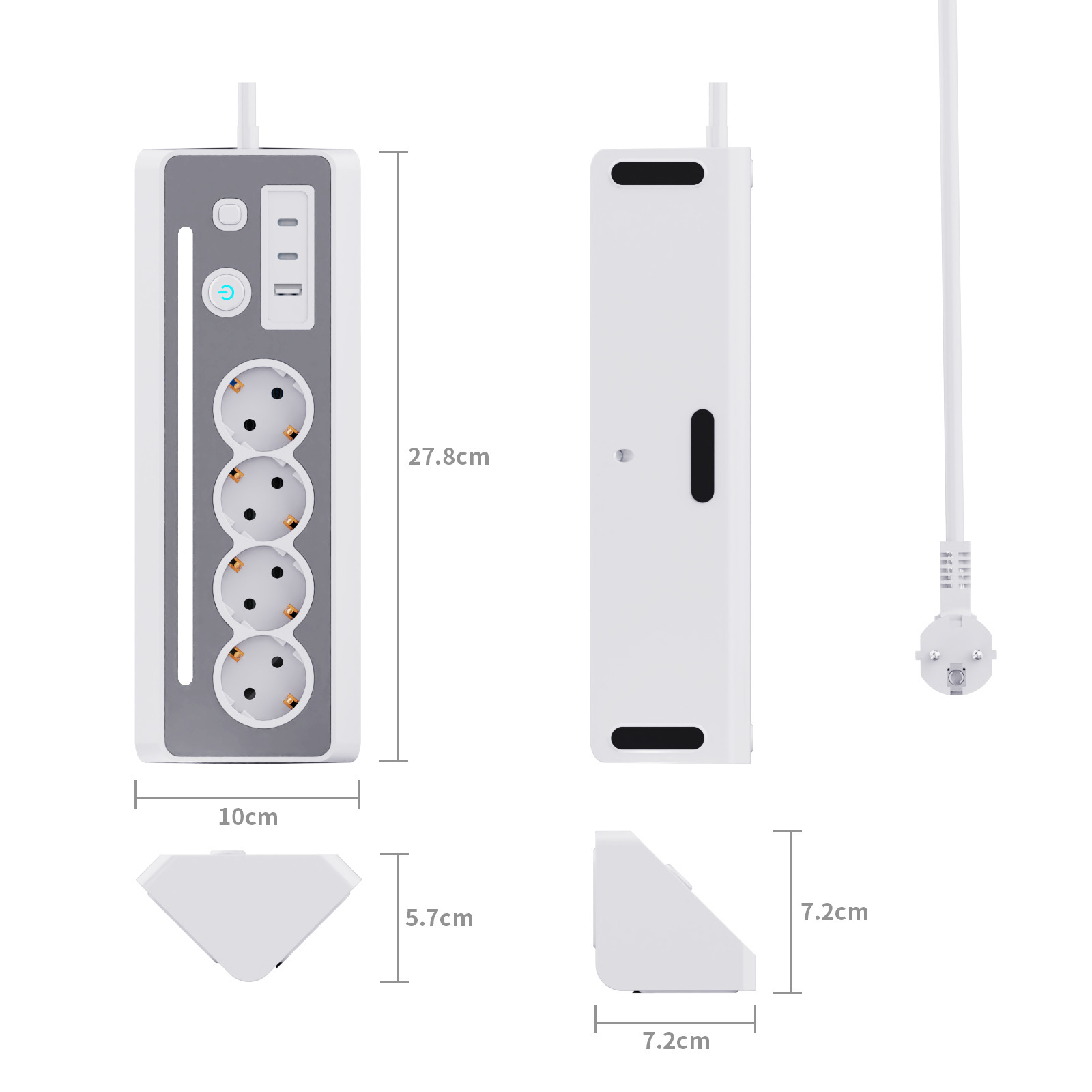 7-in-1 All-in-One Hub: 4 EU Schuko AC outlets + 3 USB ports (2 USB-A + 1 USB-C), powering/charging up to 7 devices simultaneously 📱