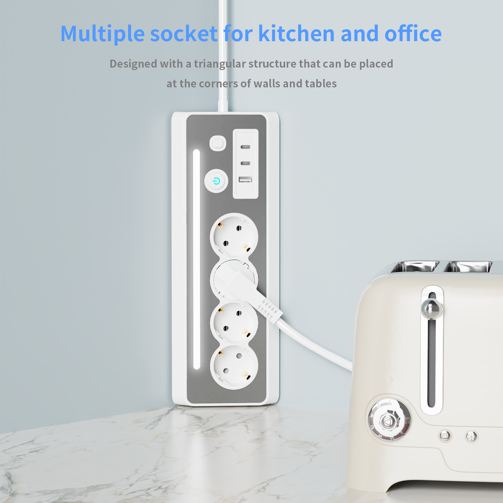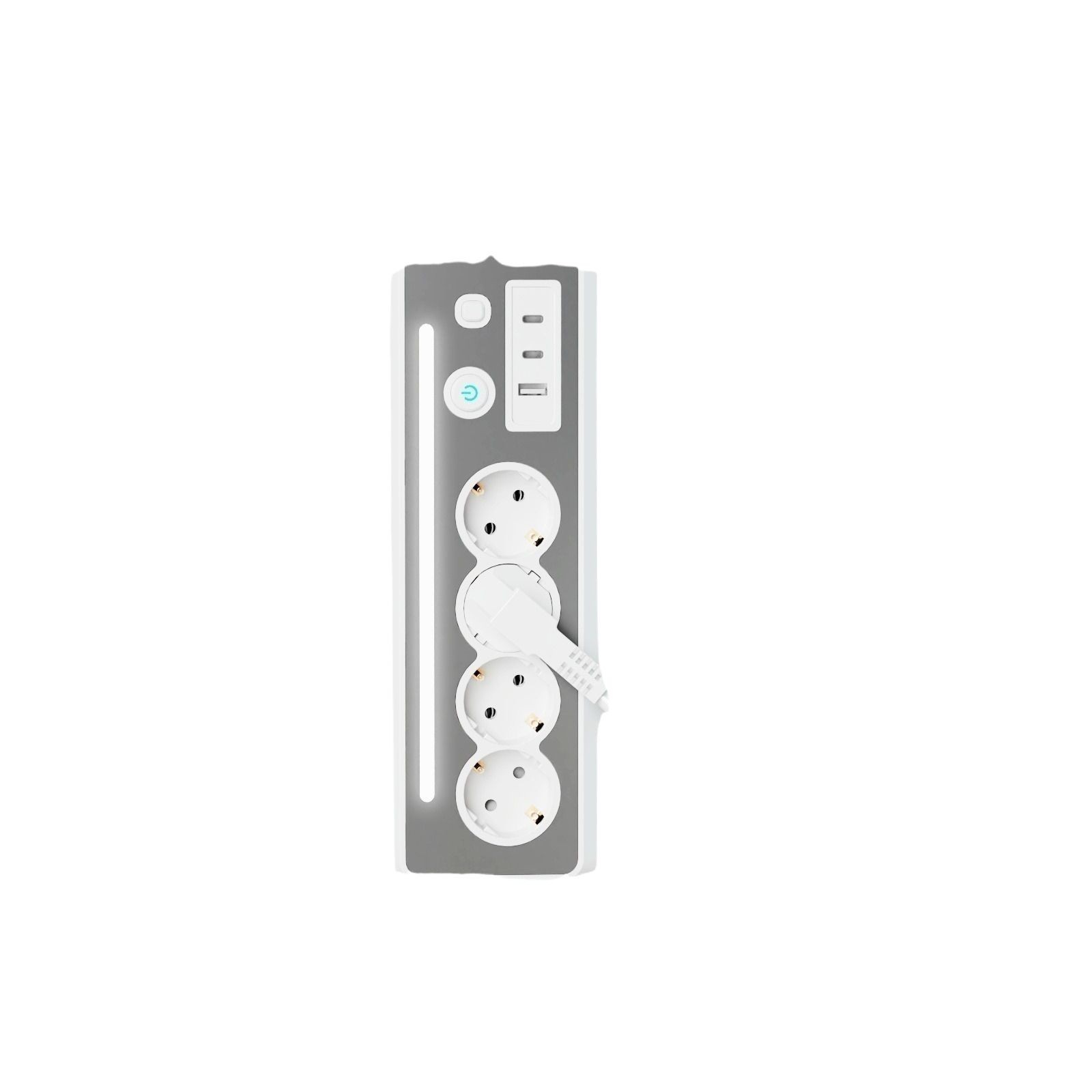 Master Control Switch: One-touch power switch with blue LED indicator for easy on/off control, saving energy and reducing standby waste.