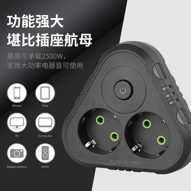 - 3-in-1: 2 EU Schuko AC outlets + master power switch
