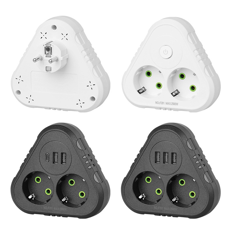 - 5-in-1: 2 EU Schuko AC outlets + 1 USB-C + 2 USB-A ports + master power switch