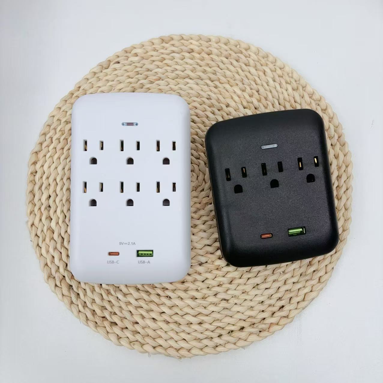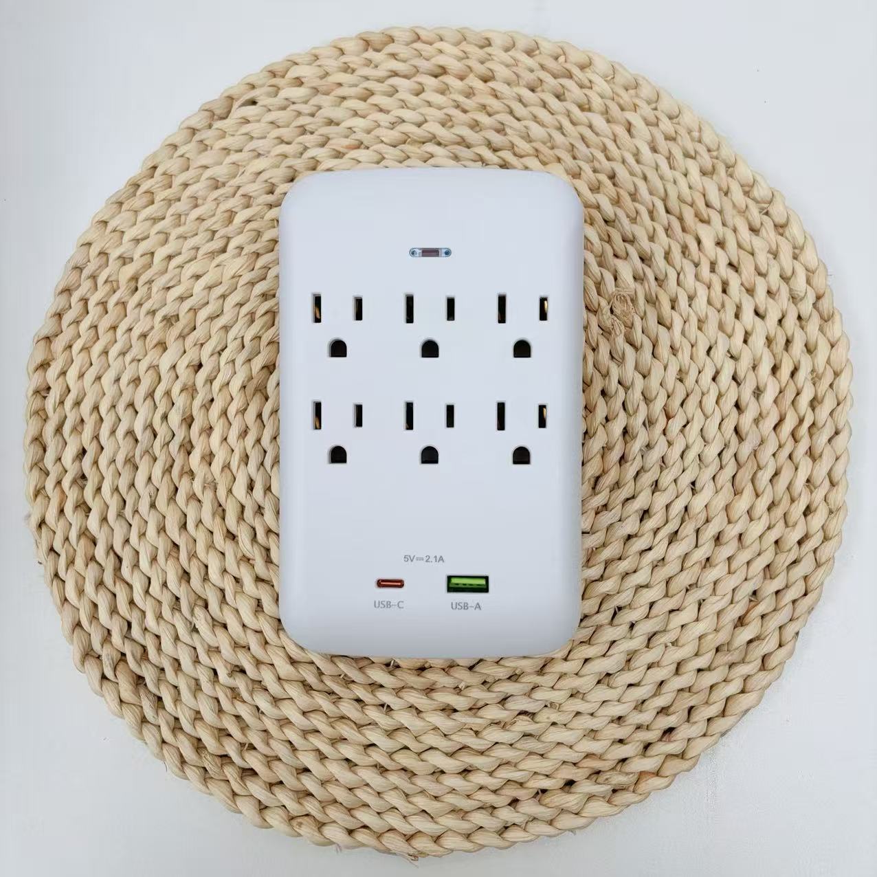 8-in-1 Design: 6 US NEMA 5-15 AC outlets + 1 USB-C port + 1 USB-A port, powering and charging up to 8 devices simultaneously.