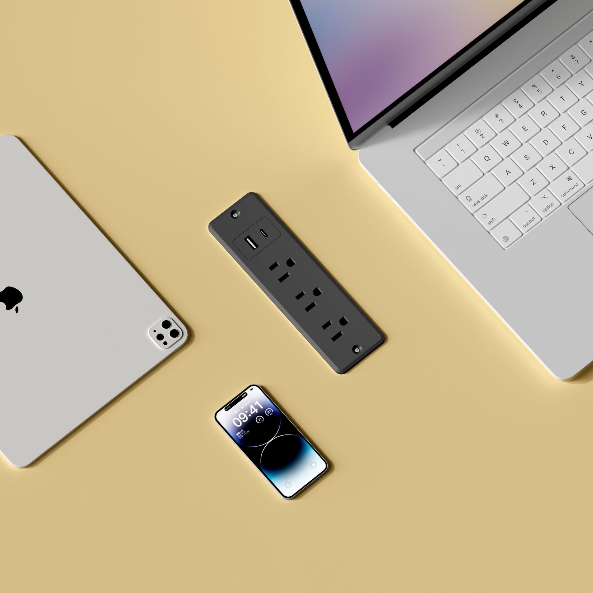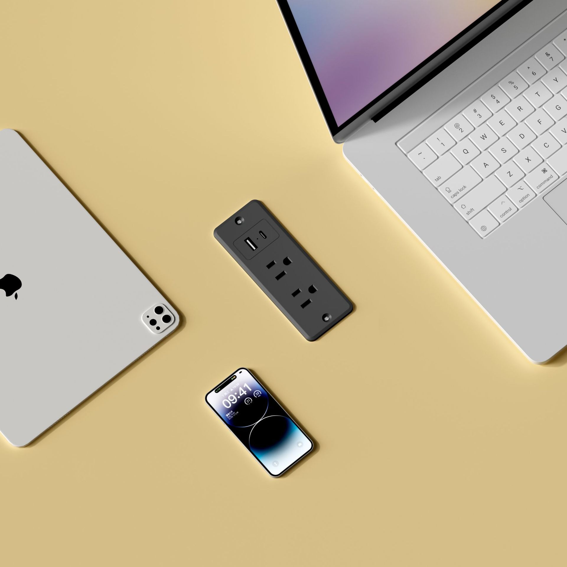 Recessed Flush-Mount Design: Low-profile rectangular unit installs directly into desk surfaces, keeping cables hidden and your workspace clean.