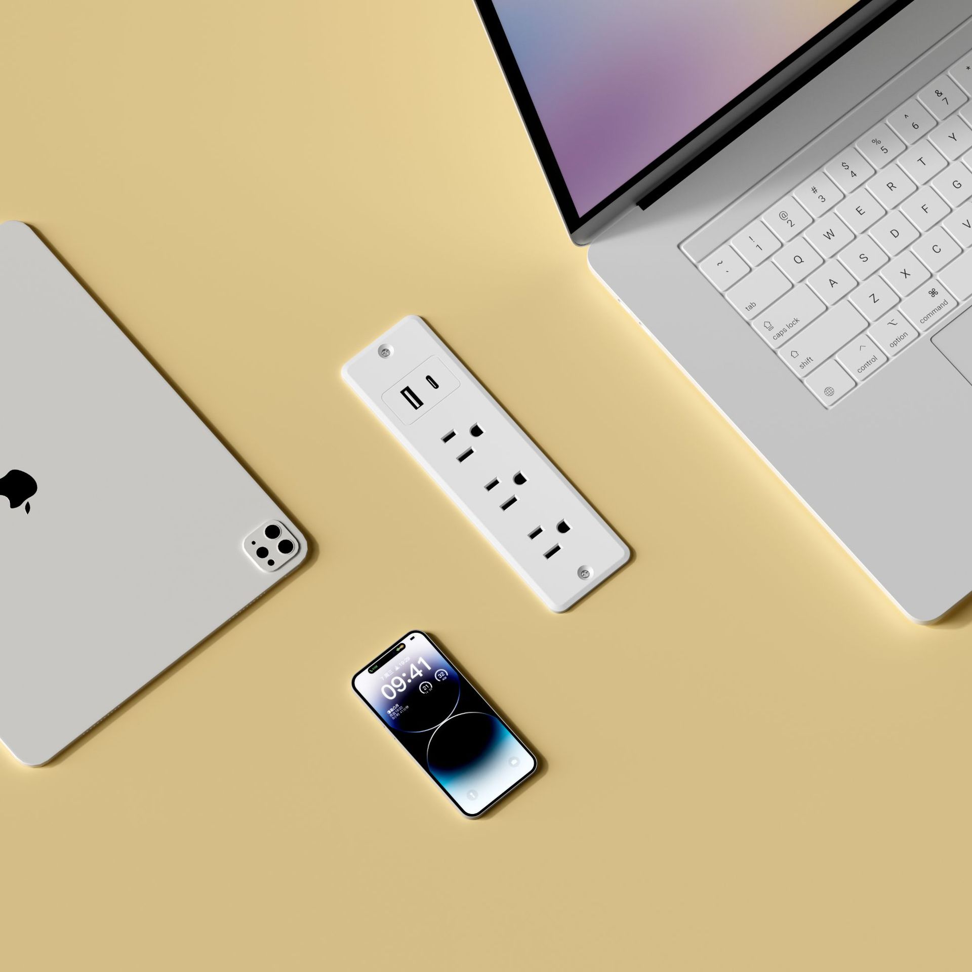 6-in-1 All-in-One Hub: 4 US NEMA 5-15 AC outlets + 1 USB-C port + 1 USB-A port, powering/charging up to 6 devices simultaneously 📱