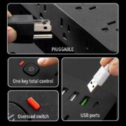 Overload Protection & Power Switch 🛡️ Built-in overload protection safeguards devices from power spikes, with a main power switch and red LED indicator for easy control and status checks.