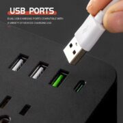 4 Fast Charging USB Ports 🔌 Includes 2 USB-A (QC 3.0, 18W) + 2 USB-C (PD 20W) ports, delivering full-speed charging for phones, tablets, and earbuds without extra adapters.