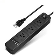 7-in-1 Design: 3 US NEMA 5-15 AC outlets + 4 USB-A ports, powering and charging up to 7 devices simultaneously.