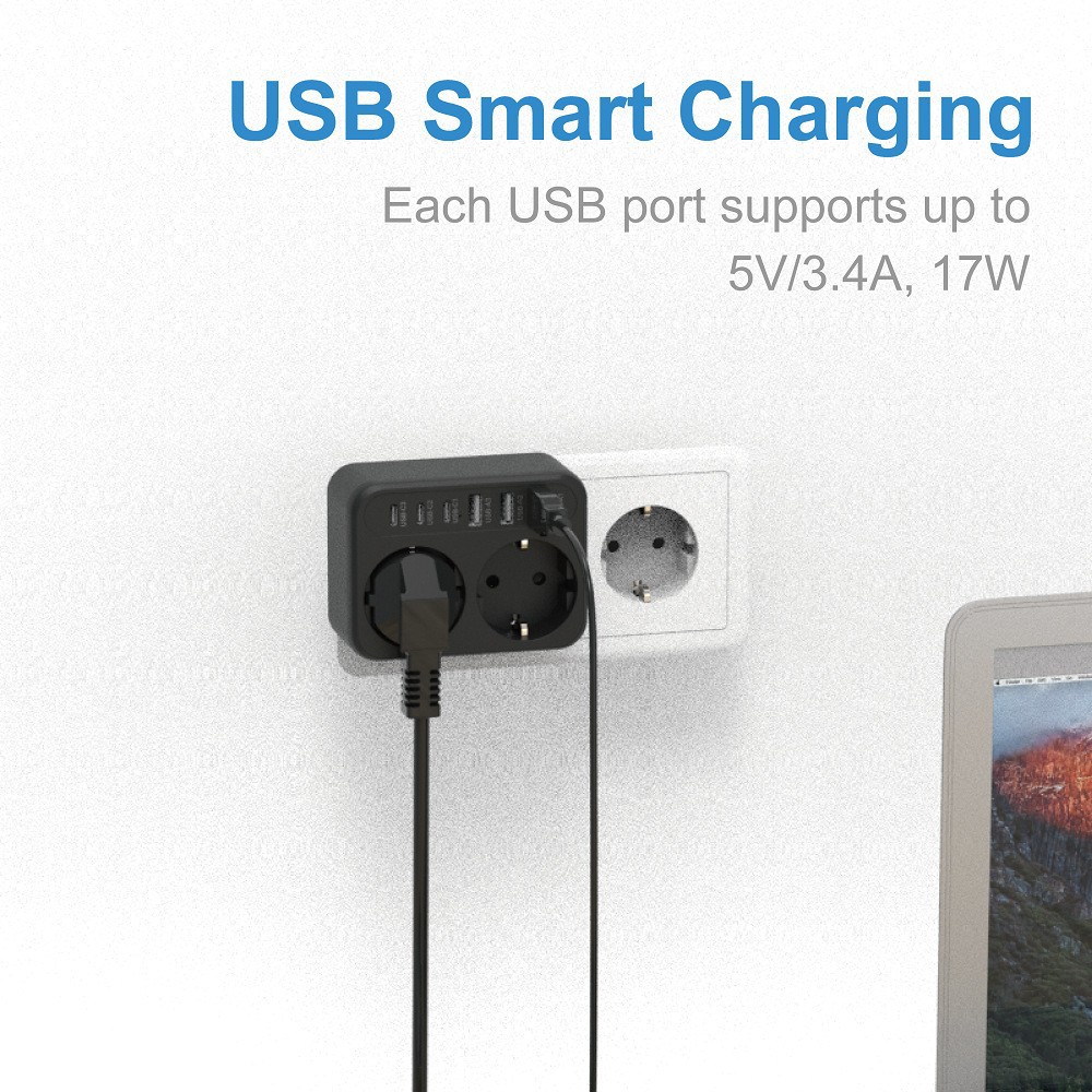 Plug and play, easy to use, no wiring or tools needed, just plug into the wall socket to get multiple power and charging ports immediately, super convenient for daily and travel use.