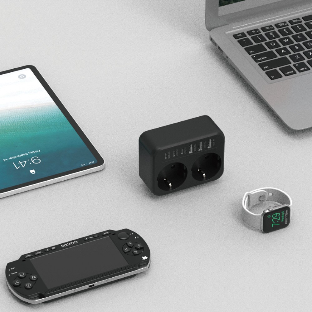 Mini cube wall-mounted style, fits closely to the wall without blocking adjacent sockets, small and lightweight, does not take up desktop space, keeps your space tidy and clean.