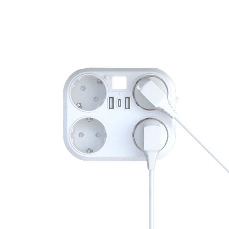 6-in-1 Design: 4 Schuko AC outlets + 2 USB ports, powering and charging all your devices simultaneously.